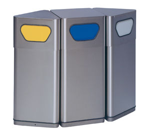• Hergestellt aus Edelstahlblech • Zur praktischen Entleerung mit abnehmbarem Kopfteil • Mit Einwurf-Öffnung · Als Zubehör, gegen Aufpreis: farbige Einwurfklappen und verzinkte Innenbehälter sowie fahrbare Untergestelle oder verzinkte Standrahmen zur Außenaufstellung Die farbigen Einwurfklappen sind nicht im Lieferumfang enthalten (siehe Zubehör) • Mit Ascher