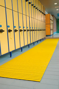 • Aus bruchsicheren Hart-PVC-Profilen • Rutschsichere Lauffläche (Bewertungsgruppe C nach DIN 51097/GUV 26.17) • Leicht zu reinigende, porenfreie Oberfläche • Geeignet für alle gängigen Reinigungsmittel • Aufrollbar • Allseitiger Wasserablauf • UV-beständig • Temperaturbeständig von -5°C bis +60°C