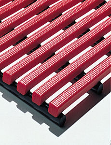 Die Bodenmatte aus elastischen, weichen Kunststoffprofilen genügt höchsten hygienischen Ansprüchen in Naß- und Barfußbereichen. Rollenlänge bis max. 30 m