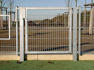 Drehflügeltor 1-flügelig, Drückergarnitur, Gitterf üllung 50x200 mm, Rahmen 40x40 mm, Pfosten 60x60 m m, BxH 1000 x 1400 mm, feuerverzinkt