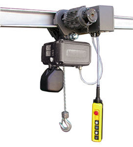 Elektrohebezug mit Elektrofahrwerk, Trag-kraft 200 0 kg, 2 Laststränge, Hubhöhe 3000 mm, Steuerkabellänge 2000 mm,