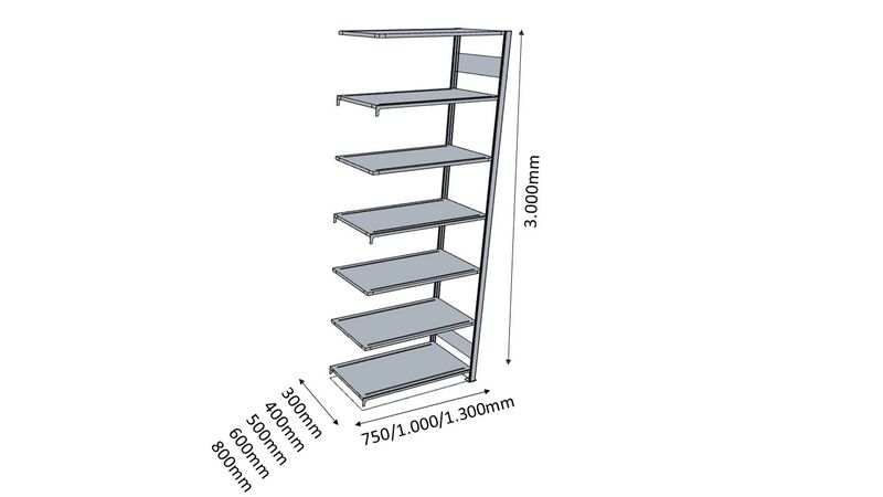 Stecksystem, Stahlblech verzinkt, mit 7 Stahl-Fachböden,
