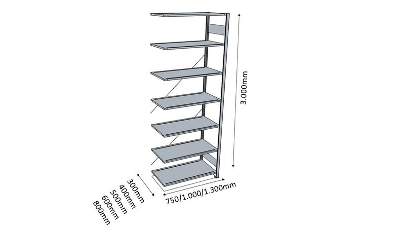 Fachbodenregal, Anbaufeld, HxBxT 3000x750x400 mm,