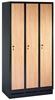 Garderobenschnk, Sockel H=100 mm, 4 Abt., Abt.B=400 mm, BxTxH 1600x500x1800 mm, MDF-Dekorfront, Koprus RAL 7035, Dekor Birke