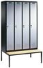 Garderobenschrank, untergeb. Sitzbank, 2 Abteile, Abt.B 300 mm, Drehriegel, BxTxH 600x500x2090 mm, RAL 7035/5012