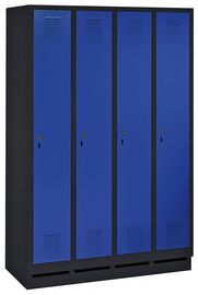 Garderobenschrank, Sockel, 3 Abteile, Abt.B 400 mm, Drehriegel, BxTxH 1200x500x1800 mm, RAL 7035