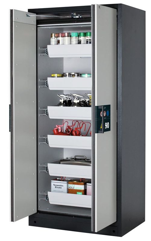 Gefahrstoffschrank, BxTxH 893x615x1953 mm, 6 Auszugswannen, inkl. TSA, AGT, RAL 7016/7035