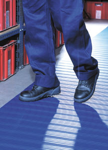 Ergonomischer Bodenbelag aus besonders weichem und elastischem Kunststoff mit geschlossener, profilierter Lauffläche. Besonders geeignet für Montagearbeitsplätze, in