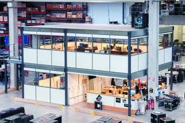 Zusätzlich bieten wir Ihnen ein breites Zubehörprogramm an. Mit den unterschiedlichen Bauformen von Treppen, Übergabeplätzen, Geländern, Auskragungen und Anfahrschutzen für die Ständer der Bühne können Sie alle notwendigen Sicherheitsmaßnahmen erfüllen, um Material oder Personenschäden präventiv zu vermeiden. Sollten Sie zudem unter bzw. auf der Lagerbühne mit Regalen planen, können wir diese gerne mit anbieten bzw. auch in die Planung mit einfließen lassen.