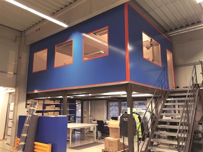 LAGERBÜHNE MIT BODEN - 3.300 X 14.000 X 19.000 MM (HXBXT) - 500 KG/QM - Graphitgrau RAL 7024