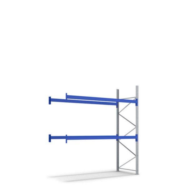 Palettenregal-Anbaufelder, Anbaufeld, 1000 kg Palettengewicht, Abmessungen H x L x T 2000 x 1890 x 1100 mm, Feldbreite 1800 mm, Feldlast 4000 kg, Stützrahmen verzinkt, Traversen kunststoffbeschichtet RAL 5010 Enzianblau