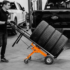 Der Reifenkarre Ergonomisch Rückenschonend lässt sich in einem Winkel von 45 Grad anpassen und ermöglicht dank der Hinterräder, die mit maximal 200 kg belastbar sind, ein einfaches, müheloses Transportieren der Reifen. Der Wagen lässt sich in einem Winkel von 90 Grad (horizontal) positionieren und als Arbeitsfläche benutzen.