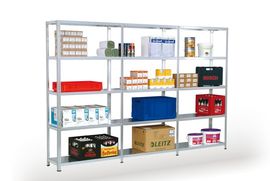 Schraubregal, Grundregal, verzinktHxBxT 2000x875x800 mm,mit 5 Fachböden,Belastung/Boden 250 kg gl. vert. L.