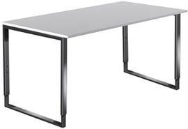 Schreibtisch, BxTxH 1600x800x680-820mm, Kufen- gestell aus Edelstahl, Platte weiß, inkl. Kabelkanal
