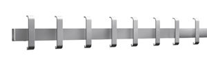 · Aus silberfarbig pulverbeschichtetem Stahl · Hut- und doppelte Mantelhaken aus Technopolymer · Endlos anbaubare Reihengarderobe · Abschlussfeld · 6 Hut- und 12 Mantelhaken