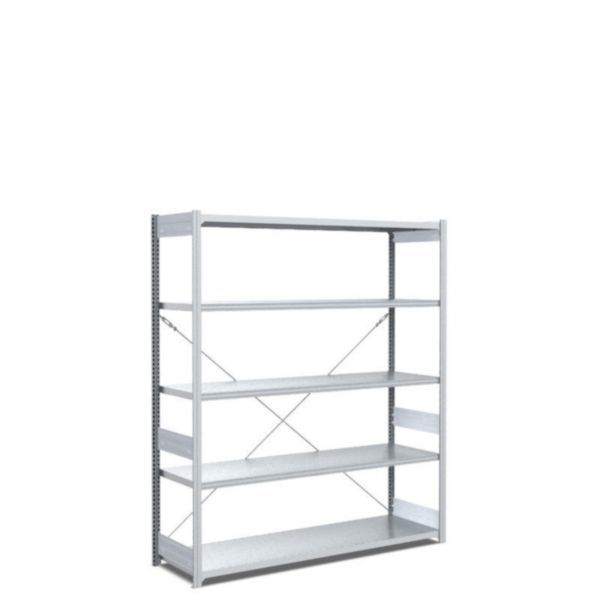 Fachbodenregale Typ L - Fachlast 100 kg, Grundfeld, glanzverzinkte Ausführung, Feldlast 1300 kg, Abmessungen H x L x T 2000 x 1358 x 524 mm, Fachlast 100 kg, Feldlast 1300 kg, Anzahl Fachböden 5