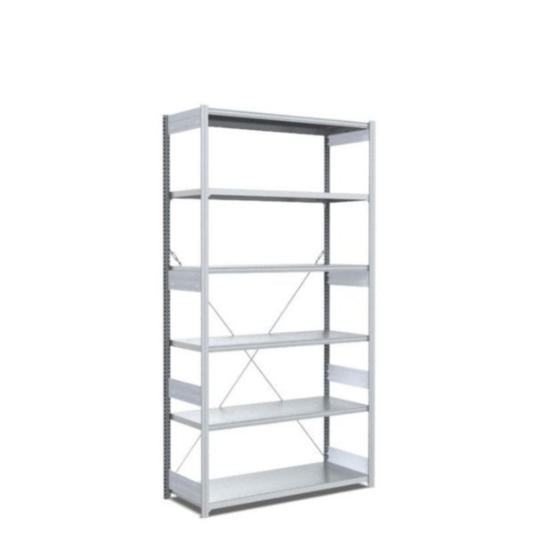 Fachbodenregale Typ M - Fachlast 200 kg, Grundfeld, glanzverzinkte Ausführung, Abmessungen H x L x T 2500 x 1058 x 524 mm, Fachlast 200 kg, Feldlast 1430 kg, Anzahl Fachböden 6