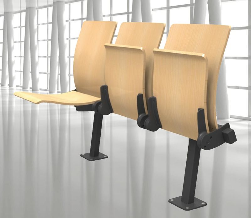 · Sitz und Rücken aus Buchenformholz, natur B1 lackiert · Ergonomisch geformt · Geschlossene Drehlager an den hochklappbaren Sitzen