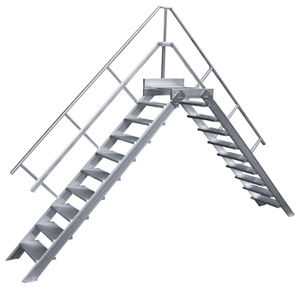 Überstieg stationär, Neigung 45°, Stufenbreite 800 mm, Stufentiefe 250mm, Podestlänge 350mm 5 Stufen, lichte Höhe 0,92 m, Gewicht 52kg